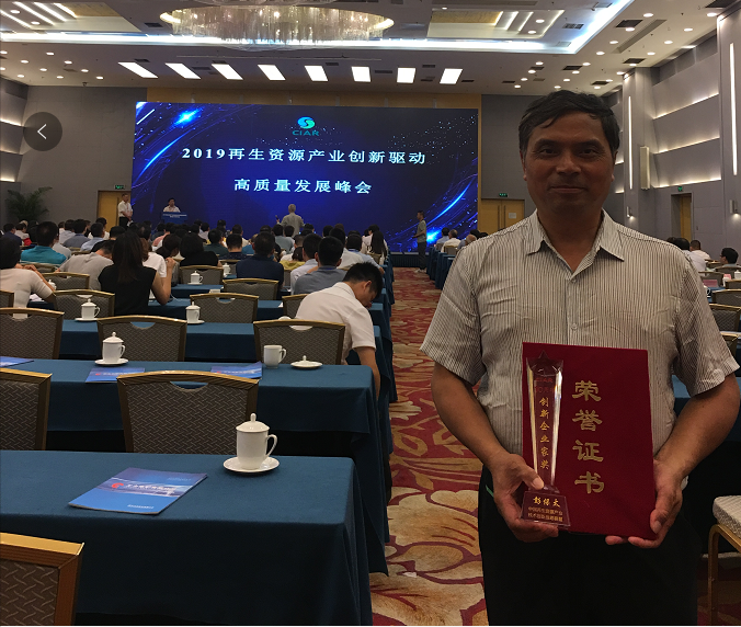 At the 2019 Summit on Innovation driven High quality Development ofRenewable Resources Industry, Peng Baotai, chairman of Jiangxi Baotai Group,was awarded the 10th Anniversary Innovation Entrepreneur Award of ChinaRenewable Resources Industry technological Innovation Strategic Alliance.In order toencourage innovation, carry forward entrepreneurship, give full play to theimportant role of entrepreneurs in innovation-driven development.
