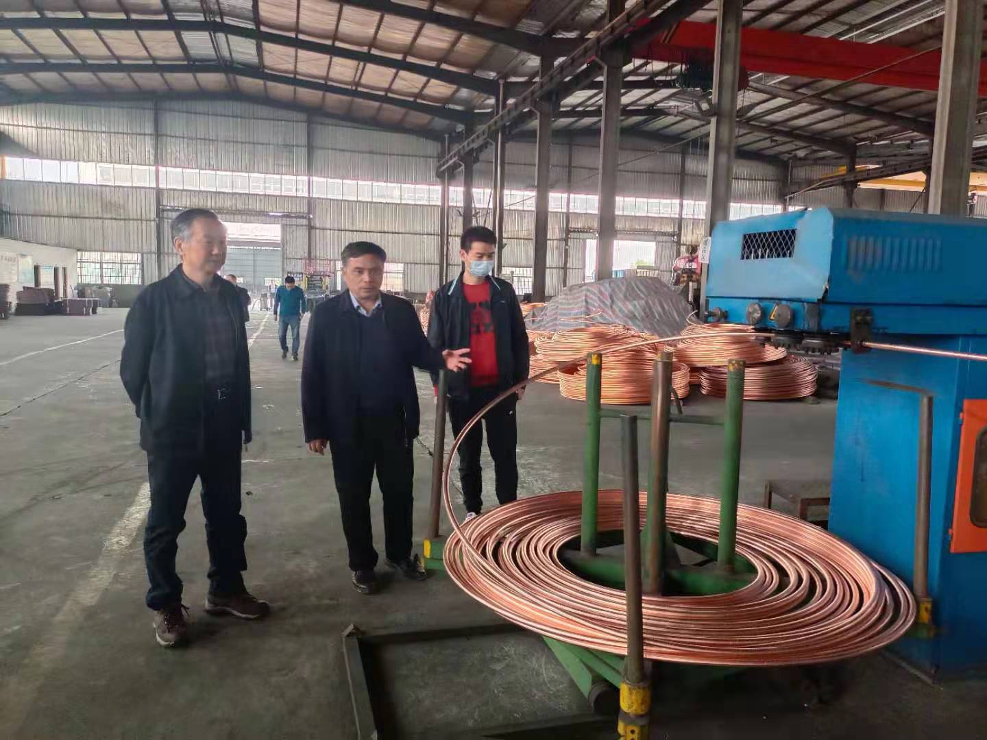 Accompanied by Chairman Peng, the research group visited the upper guide workshop, T2 copper bar workshop, aluminum ingot workshop and JinLianSheng intelligent doors and Windows exhibition hall. During the visit, we fully understood the development model of the whole circular industrial chain of Baotai Group, which includes recycling of recycled metals -- rough processing -- fine processing -- intelligent manufacturing.
